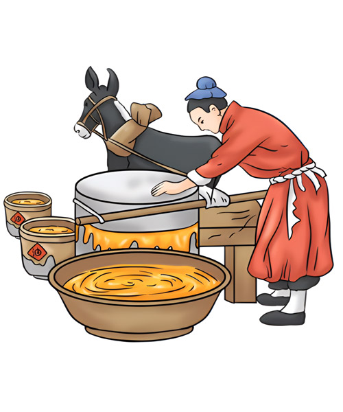 • 漂洗后的芝麻,以鐵鍋碳火慢炒至香味溢出。其中炒芝麻的手法、火候及加料工藝等,都以獨(dú)特的秘訣形式由師徒間代代傳承。